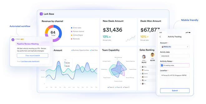 Supporting the workflow of modern CRM app and the features of project management tools, Lark helps businesses move from managing information to mastering collaboration. Here, they can build teams that are not just productive, but cohesive, adaptable, and ready for the future of work.